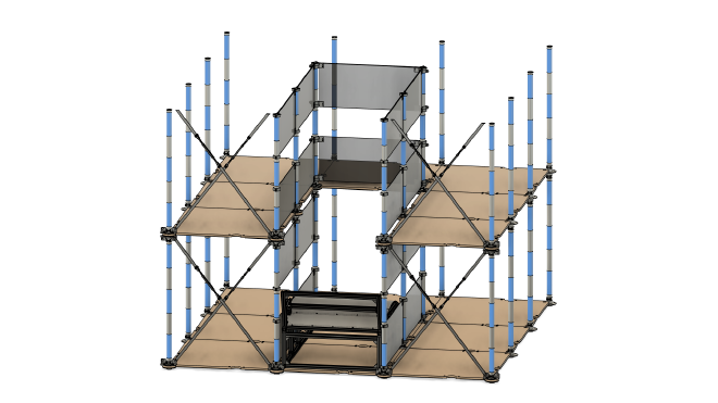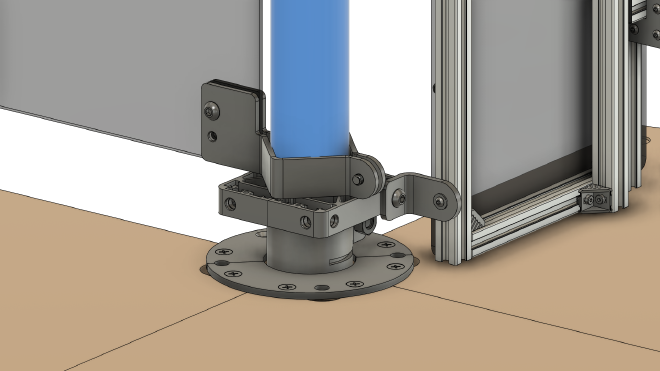 Mount additional clamps for safety panels onto Column A, so that an “angle” is formed. Now, the clamp with threaded holes must be oriented towards the center of Column F.